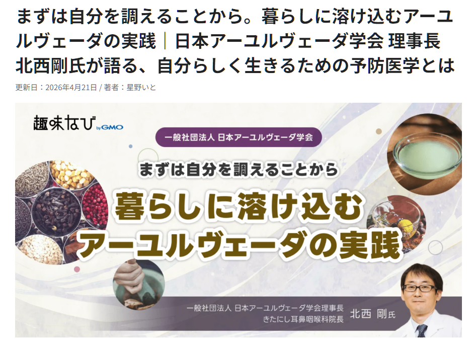 GMO 趣味なび さんから取材を受け アーユルヴェーダに関連する記事が 掲載されています。